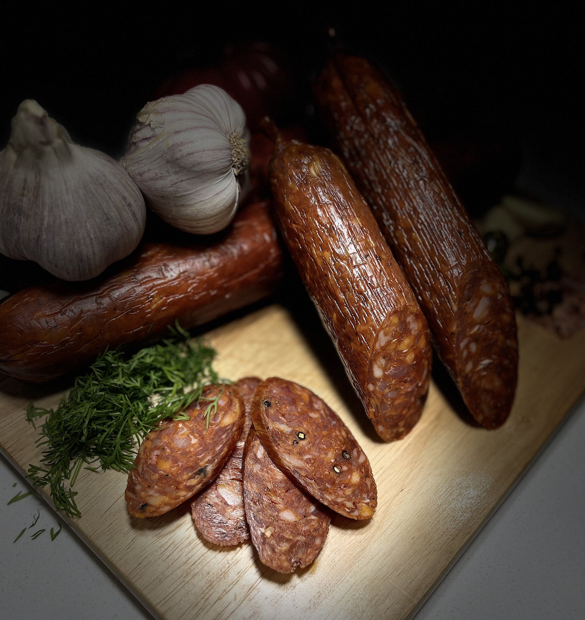 Pork, Salt, Herbs & Spices, Garlic, Curing Agents: Starter Culture, E250. Naturally Occurring E251.